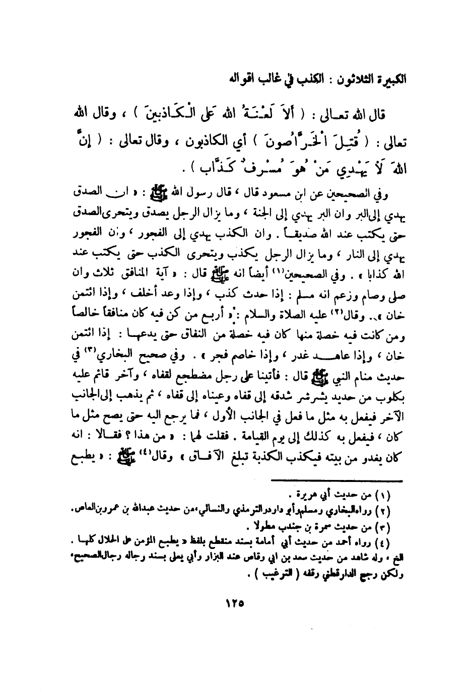الْكَبِيرَة الثَّلَاثُونَ الْكَذِب فِي غَالب أَقْوَاله