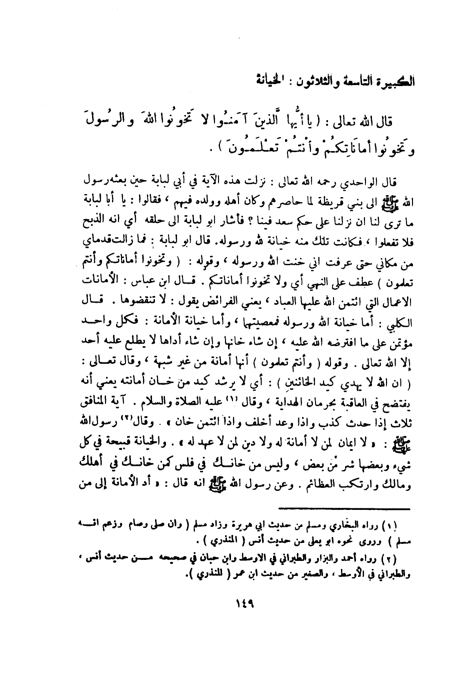 الْكَبِيرَة التَّاسِعَة وَالثَّلَاثُونَ الْخِيَانَة