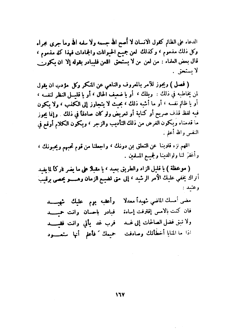 يَا قَلِيل الزَّاد وَالطَّرِيق بعيد يَا مُقبلا على مَا يضر تَارِكًا لما يُفِيد أتراك يخفى عَلَيْك الْأَمر الرشيد إِلَى مَتى تضيع الزَّمَان وَهُوَ يُحْصى برقيب وعتيد