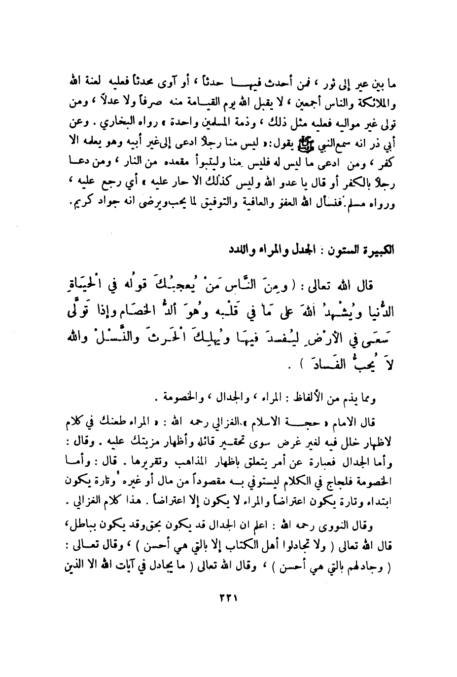 الْكَبِيرَة السِّتُّونَ الجدل والمراء واللدد