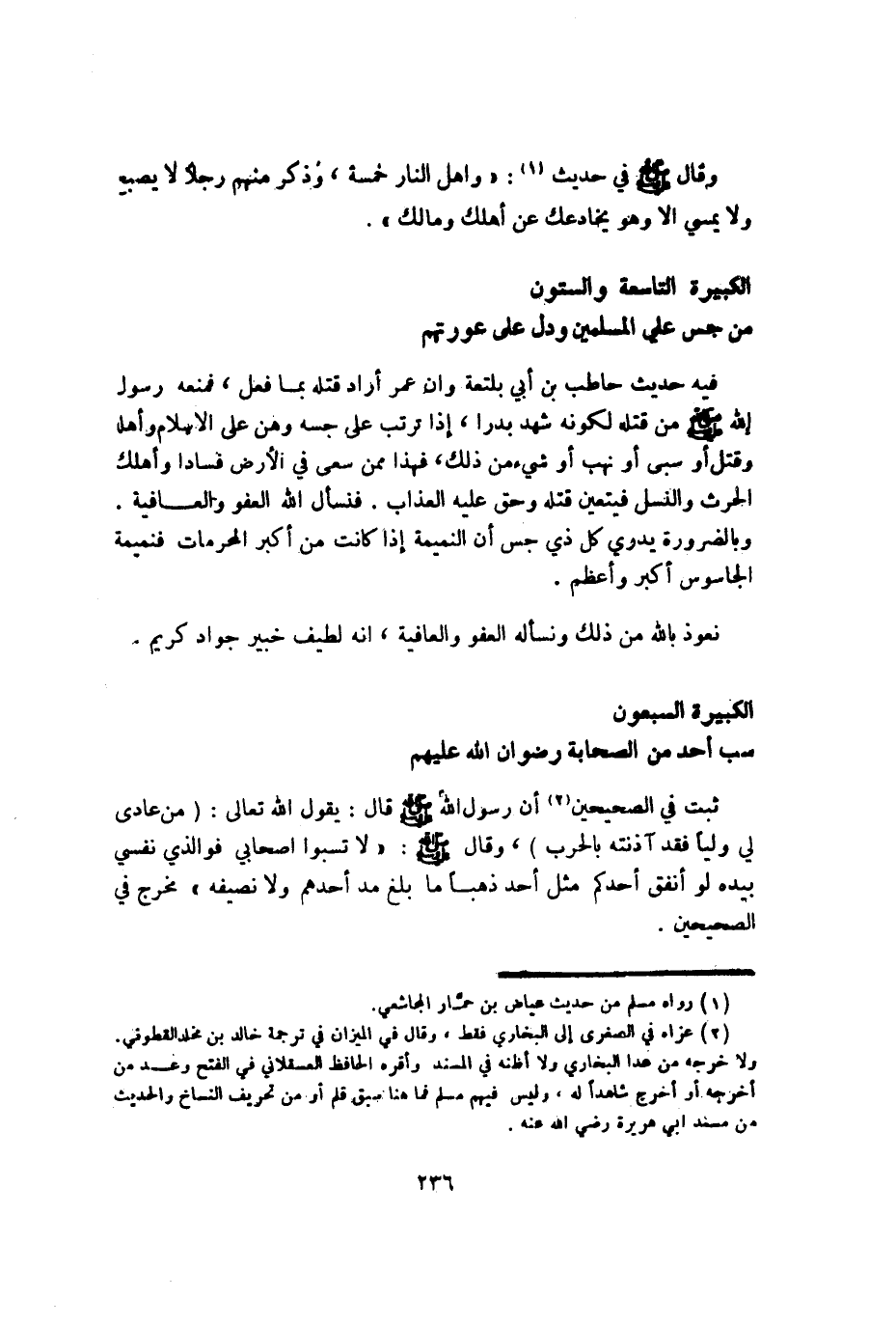 الْكَبِيرَة السبعون سب أحد من الصَّحَابَة رضوَان الله عَلَيْهِم