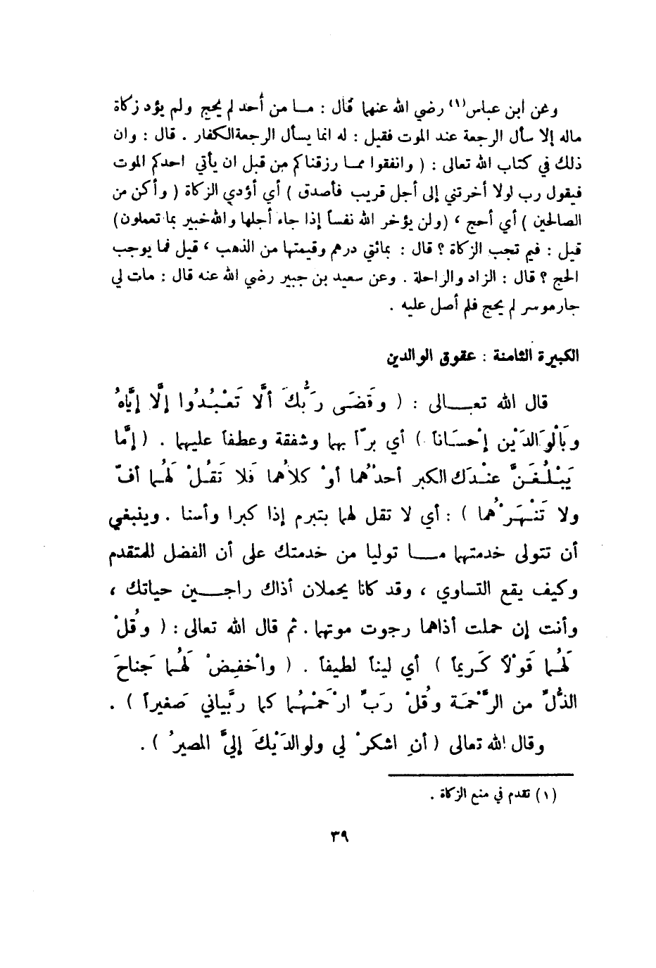 الْكَبِيرَة الثَّامِنَة عقوق الْوَالِدين