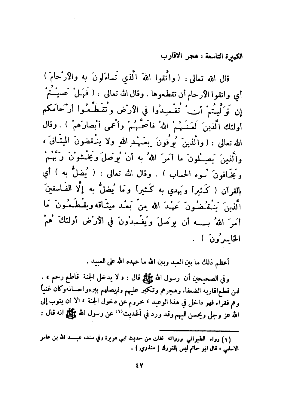 الْكَبِيرَة التَّاسِعَة هجر الْأَقَارِب