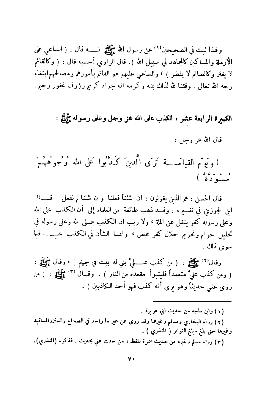 الْكَبِيرَة الرَّابِعَة عشر الْكَذِب على الله عز وَجل وعَلى رَسُوله صلى الله عَلَيْهِ وَسلم