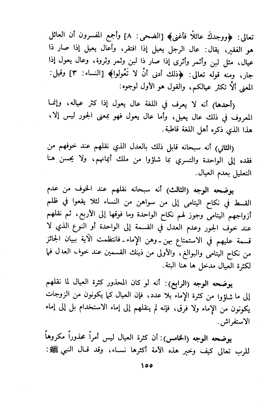أحدها: أنه لا يعرف فى اللغة عال يعول إذا كثر عياله وانما المعروف فى ذلك عال يعيل وأما عال يعول فهو بمعنى الجور ليس إلا هذا الذى ذكره أهل اللغة قاطبة