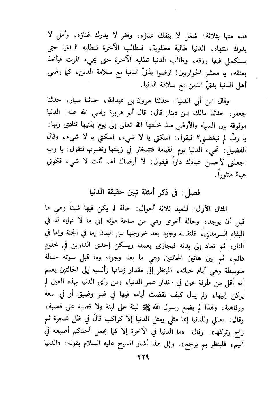 فصل: فى ذكر أمثلة تبين حقيقة الدنيا
