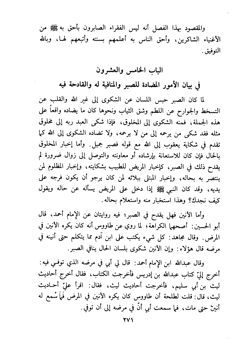 الباب الخامس والعشرون: فى بيان الأمور المضادة للصبر والمنافية له والقادحة فيه
