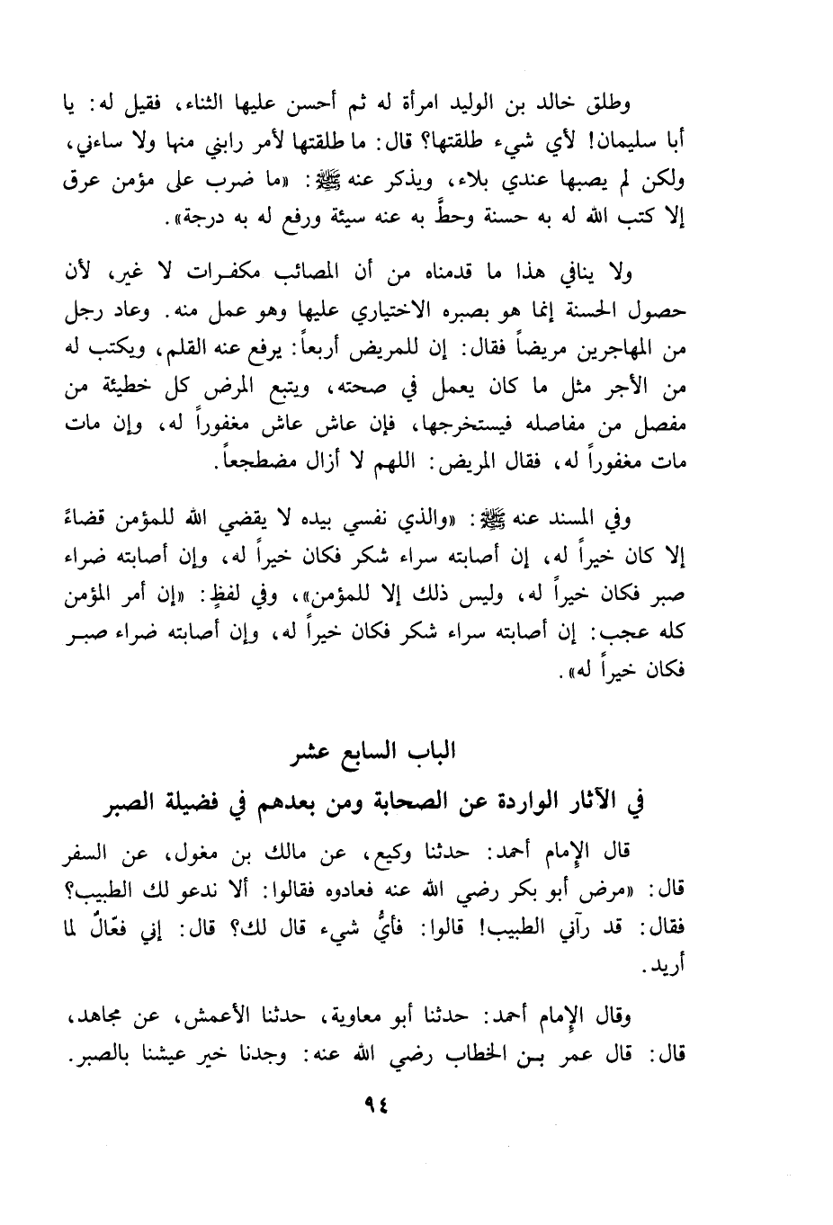 الباب السابع عشر: في الآثار الواردة عن الصحابة ومن بعدهم في فضيلة الصبر