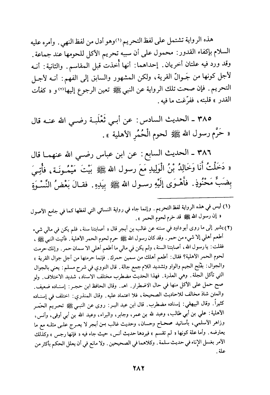 385 - الْحَدِيثُ السَّادِسُ: عَنْ أَبِي ثَعْلَبَةَ - رَضِيَ اللَّهُ عَنْهُ - قَالَ «حَرَّمَ رَسُولُ اللَّهِ - صَلَّى اللَّهُ عَلَيْهِ وَسَلَّمَ - لُحُومَ الْحُمُرِ الْأَهْلِيَّةِ» .
