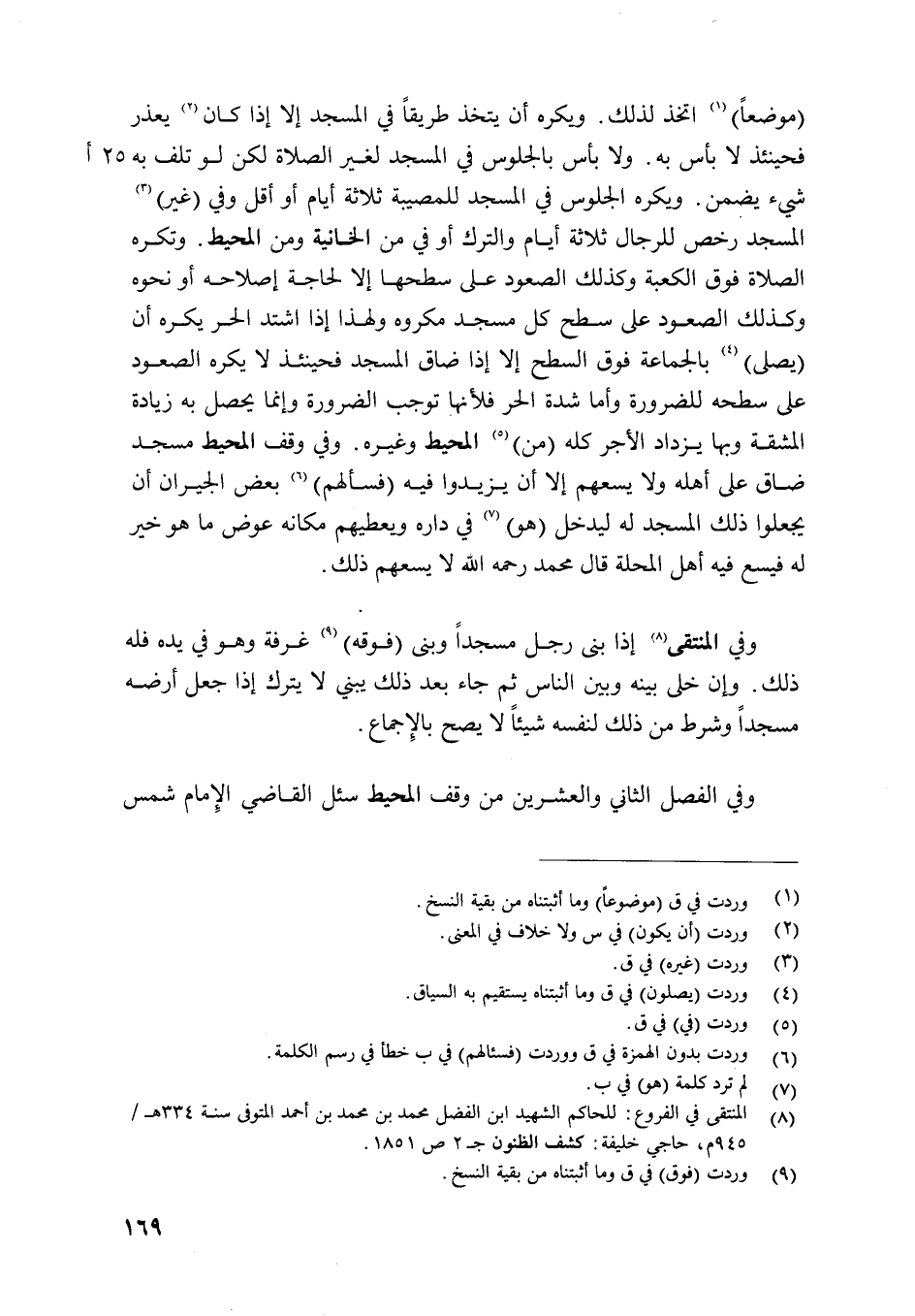 وَفِي الْفَصْل الثَّانِي وَالْعِشْرين من وقف الْمُحِيط سُئِلَ القَاضِي الإِمَام شمس