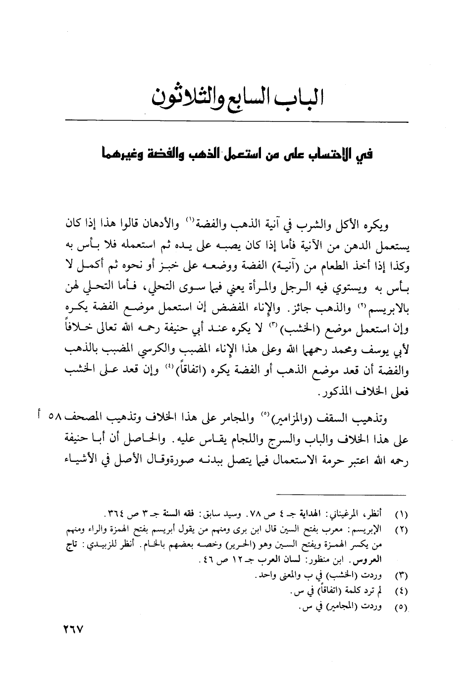 فِي الاحتساب على من اسْتعْمل الذَّهَب وَالْفِضَّة وَغَيرهمَا