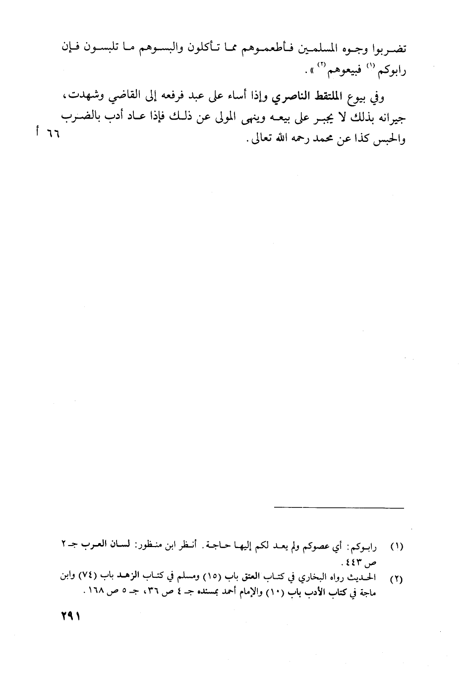 تضربوا وُجُوه الْمُسلمين فَأَطْعِمُوهُمْ مِمَّا تَأْكُلُونَ والبسوهم مَا تلبسُونَ فَإِن رابوكم فبيعوهم