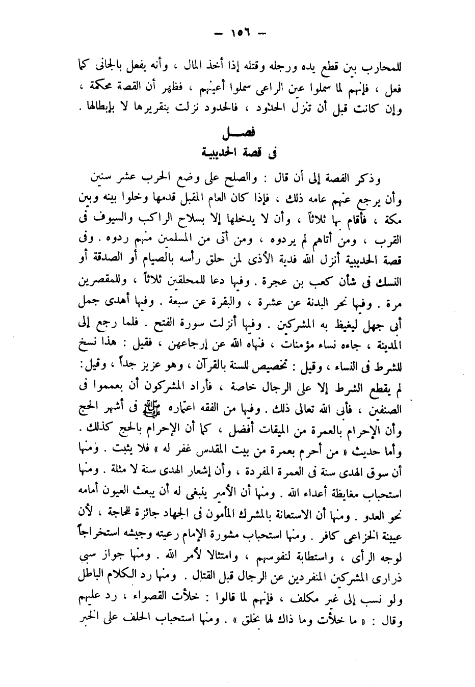 في قصة الحديبية وذكر القصة إلى أن قال: والصلح على وضع الحرب عشر سنين، وأن يرجع عنهم عامه ذلك، فإذا كَانَ الْعَامُ الْمُقْبِلُ قَدِمَهَا وَخَلَّوْا بَيْنَهُ وَبَيْنَ مَكَّةَ، فَأَقَامَ بِهَا ثَلَاثًا، وَأَنْ لَا يَدْخُلَهَا إلا بسلاح الراكب والسيوف في القُرُب، ومن أتاهم لم يردوه، ومن أتى من المسلمين منهم ردوه.