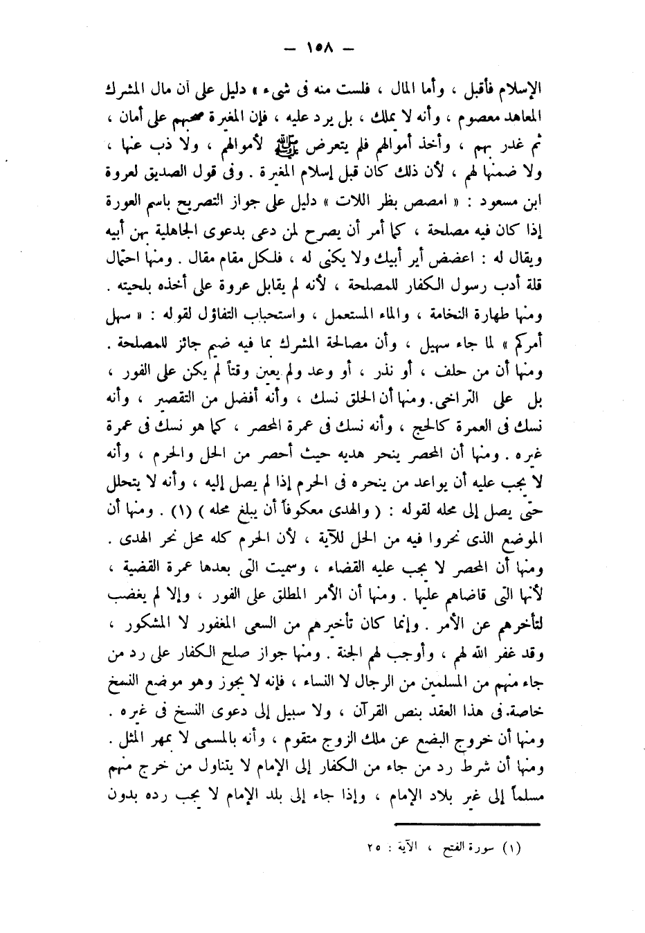 وَمِنْهَا جَوَازُ صُلْحِ الْكُفَّارِ عَلَى رَدِّ مَنْ جاء منهم من المسلمين من الرجال لا النساء، فإنه لا يجوز وهو مَوْضِعُ النَّسْخِ خَاصَّةً فِي هَذَا الْعَقْدِ بِنَصِّ الْقُرْآنِ، وَلَا سَبِيلَ إِلَى دَعْوَى النَّسْخِ فِي غيره.