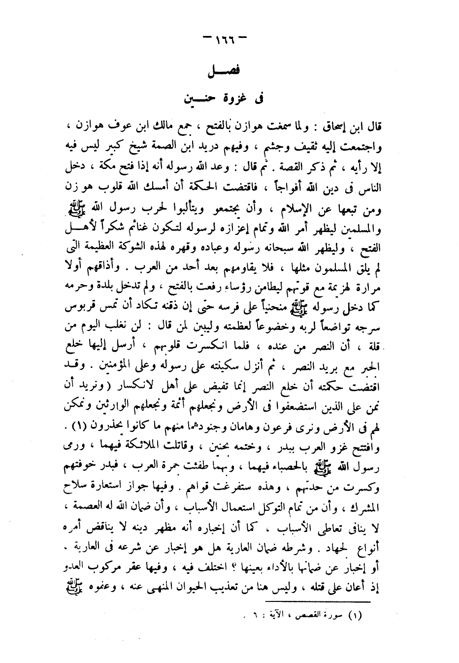 وأذاقهم أولا مرارة الهزيمة مع قوتهم ليطامن رؤساء رُفِعَتْ بِالْفَتْحِ، وَلَمْ تَدْخُلْ بَلَدَهُ وَحَرَمَهُ كَمَا دخل رسوله صلى الله عليه وسلم منحنيا على فرسه حتى إن ذقنه يكاد أن تمس قربوس سرجه تواضعا لربه وخضوعا لعظمته وليبين لمن قال: لن نغلب اليوم من قلة أن النصر من عنده، فلما انكسرت قلوبهم أرسل إِلَيْهَا خِلَعُ الْجَبْرِ مَعَ بَرِيدِ النَّصْرِ ثُمَّ أَنْزَلَ سَكِينَتَهُ عَلَى رَسُولِهِ وَعَلَى الْمُؤْمِنِينَ، وقد اقتضت حكمته أن خلع النصر إِنَّمَا تَفِيضُ عَلَى أَهْلِ الِانْكِسَارِ {وَنُرِيدُ أَنْ نَمُنَّ عَلَى الَّذِينَ اسْتُضْعِفُوا فِي الْأَرْضِ وَنَجْعَلَهُمْ أَئِمَّةً وَنَجْعَلَهُمُ الْوَارِثِينَ - وَنُمَكِّنَ لَهُمْ فِي الْأَرْضِ وَنُرِيَ فِرْعَوْنَ وَهَامَانَ وَجُنُودَهُمَا مِنْهُمْ مَا كَانُوا يَحْذَرُونَ} [القصص: 5 - 6] (¬1) . وافتتح غزو العرب ببدر، وختمه بحنين، وقاتلت الملائكة فيهما، ورمى رسول الله صلى الله عليه وسلم بالحصباء فيهما، وبهما طفئت جمرة العرب، فبدر خوفتهم، وكسرت حدتهم، وهذه استفرغت قواهم.