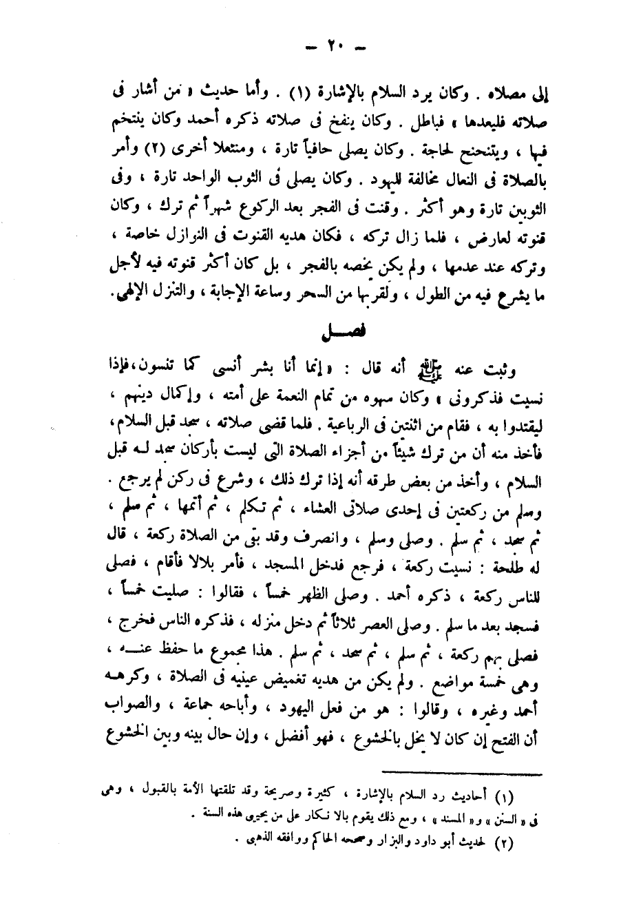 «وكان يصلي حافيا تارة، ومنتعلا أخرى» (¬2) وأمر بالصلاة في النعل مخالفة اليهود وَكَانَ يُصَلِّي فِي الثَّوْبِ الْوَاحِدِ تَارَةً، وَفِي الثَّوْبَيْنِ تَارَةً وَهُوَ أَكْثَرُ.