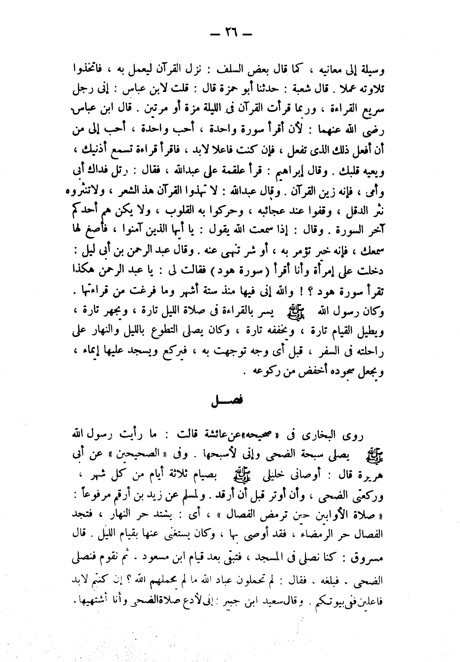 فصل روى البخاري في صحيحه عن عائشة قَالَتْ: «مَا رَأَيْتُ رَسُولَ اللَّهِ صَلَّى اللَّهُ عَلَيْهِ وَسَلَّمَ يُصَلِّي سُبْحَةَ الضُّحَى وَإِنِّي لَأُسَبِّحُهَا.