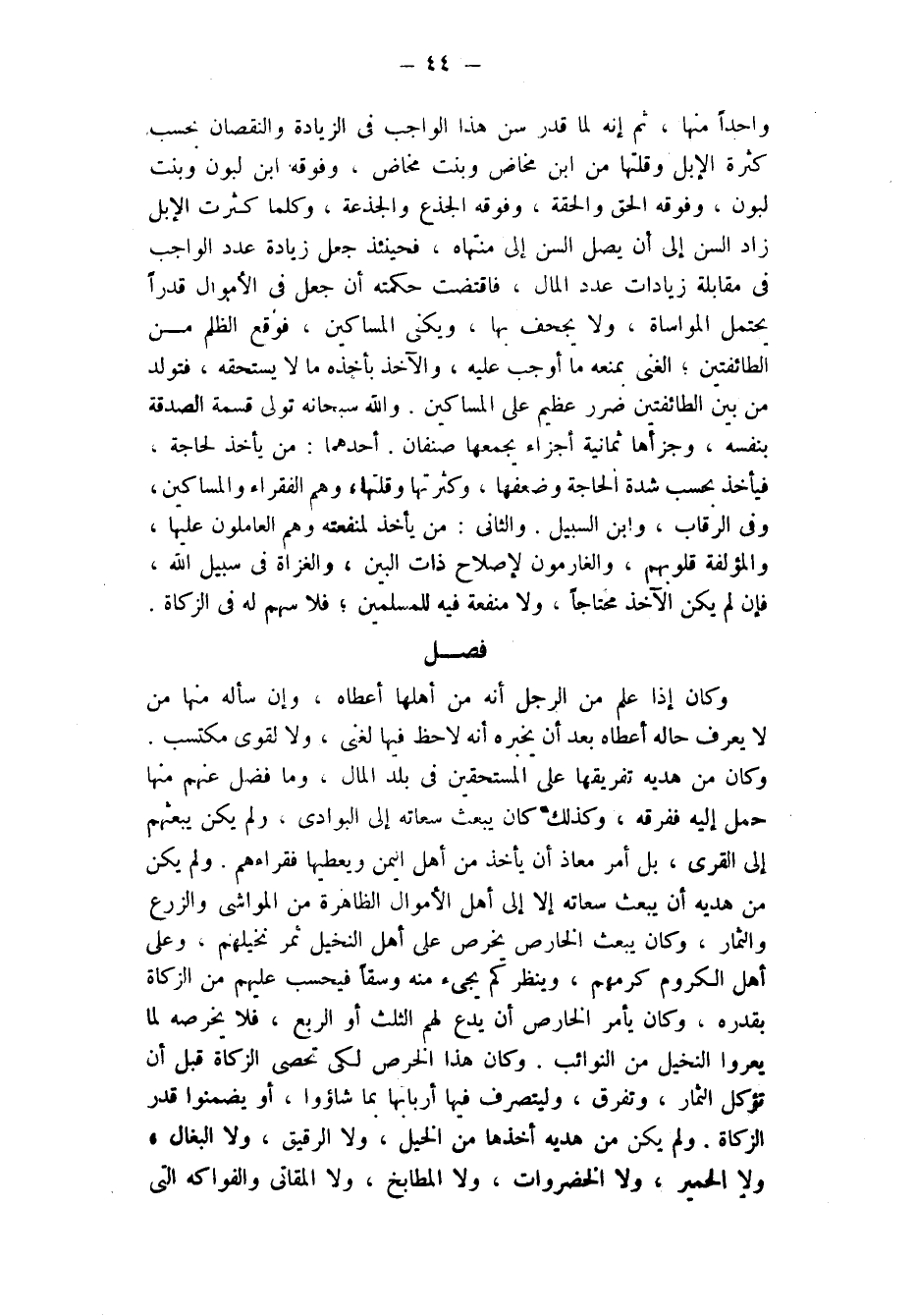 وكان من هديه تفريقها على المستحقين فِي بَلَدِ الْمَالِ، وَمَا فَضَلَ عَنْهُمْ مِنْهَا حمل إليه ففرقه، وكذلك كَانَ يَبْعَثُ سُعَاتَهُ إِلَى الْبَوَادِي، وَلَمْ يَكُنْ يبعثهم إلى القرى، بل أمر معاذا أن يأخذها من أهل اليمن ويعطيها فقراءهم.