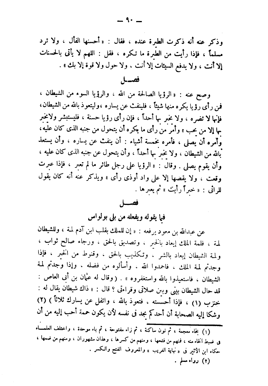 فصل وصح عنه: «الرؤيا الصالحة من الله، والرؤيا السوء مِنَ الشَّيْطَانِ، فَمَنْ رَأَى رُؤْيَا يَكْرَهُ مِنْهَا شيئا، فلينفث عن يساره، وَلْيَتَعَوَّذْ بِاللَّهِ مِنَ الشَّيْطَانِ، فَإِنَّهَا لَا تَضُرُّهُ، ولا يخبر بها أحدا، فإن رَأَى رُؤْيَا حَسَنَةً، فَلْيَسْتَبْشِرْ، وَلَا يُخْبِرْ بِهَا إِلَّا مَنْ يُحِبُّ» . وَأَمَرَ مَنْ رَأَى مَا يكره أن يتحول من جَنْبِهِ الَّذِي كَانَ عَلَيْهِ، وَأَمَرَهُ أَنْ يُصَلِّيَ، فَأَمَرَهُ بِخَمْسَةِ أَشْيَاءَ: أَنْ يَنْفُثَ عَنْ يَسَارِهِ، وأن يستعيذ بالله من الشيطان، ولا يُخْبِرَ بِهَا أَحَدًا، وَأَنْ يَتَحَوَّلَ عَنْ جَنْبِهِ الذي كان عليه، وأن يقوم يصلي، وَقَالَ: «الرُّؤْيَا عَلَى رِجْلِ طَائِرٍ مَا لَمْ تُعَبَّرْ، فَإِذَا عُبِّرَتْ وَقَعَتْ، وَلَا يَقُصُّهَا إِلَّا على واد أو ذي رأي» . ويذكر عنه أنه كان يقول للرائي: «خيرا رأيت» . ثم يعبرها.