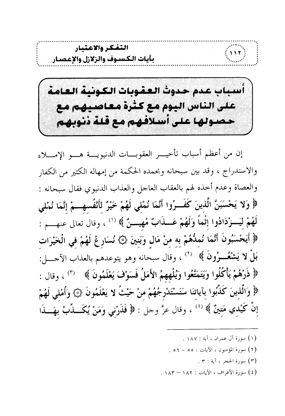 كتاب التفكر والاعتبار بآيات الكسوف والزلازل والإعصار