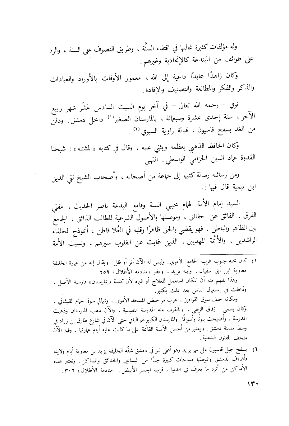 وَمِنْهُم الشَّيْخ الامام الْعَلامَة الْحَافِظ الْبركَة الْقدْوَة ذُو الْفُنُون البديعة والمصنفات النافعة جمال الدّين عُمْدَة الْمُحَقِّقين أَبُو المظفر يُوسُف بن مُحَمَّد ابْن مَسْعُود بن مُحَمَّد بن عَليّ بن ابراهيم الْعَبَّادِيّ ثمَّ الْعقيلِيّ السرمري نزيل دمشق الْحَنْبَلِيّ مولده فِيمَا وجدته بِخَطِّهِ فِي سَابِع عشر رَجَب من سنة سِتّ وَتِسْعين وسِتمِائَة بسر من رأى وَتُوفِّي يَوْم السبت الْحَادِي وَالْعِشْرين من جُمَادَى الاولى سنة سِتّ وَسبعين وَسَبْعمائة بِدِمَشْق وَدفن بمقبرة الصُّوفِيَّة