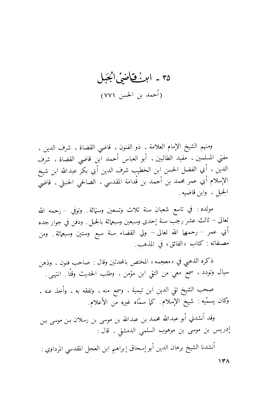 لم يكن فِي الدنا لَهُ من نَظِير ... فِي البرايا فِي الْفضل والإحكام
