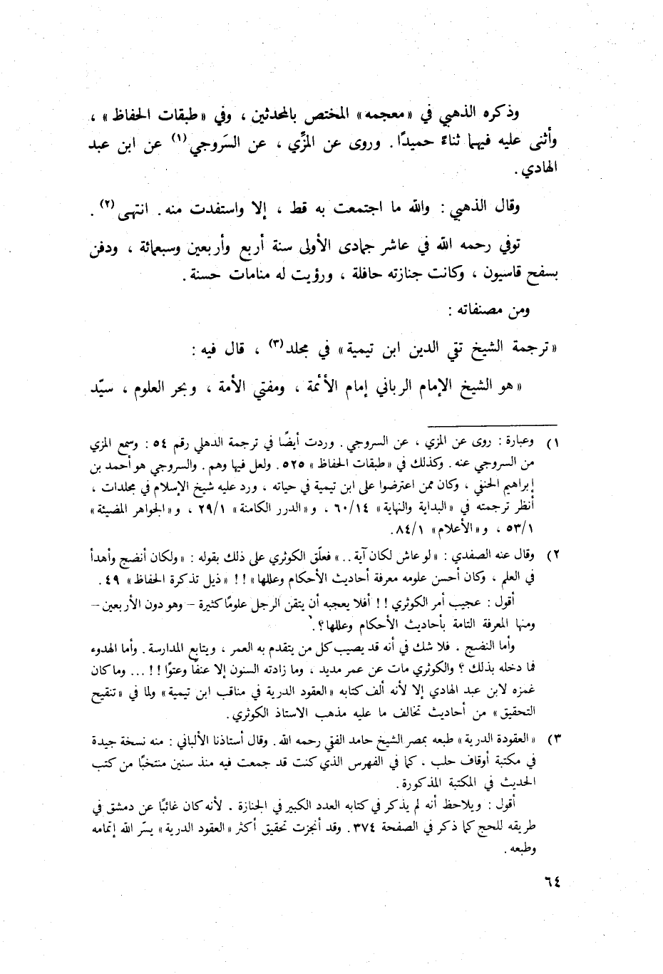 وَهَذِه الابيات كتبهَا الْحَافِظ أَبُو عبد الله مُحَمَّد بن أَحْمد بن عبد الْهَادِي بِخَطِّهِ ونقلها من خطه الْمُحدث أَبُو نصر مُحَمَّد بن طولوبغا وبخطه وَجدتهَا ووجدتها أَيْضا بِخَط الْحَافِظ أبي عبد الله الذَّهَبِيّ لَكِن الْبَيْت الْخَامِس مِنْهَا ... فاظهر الْحق إِذْ آثاره درس ... وأخمد الشَّرّ إِذْ طارت بِهِ الشرر ...