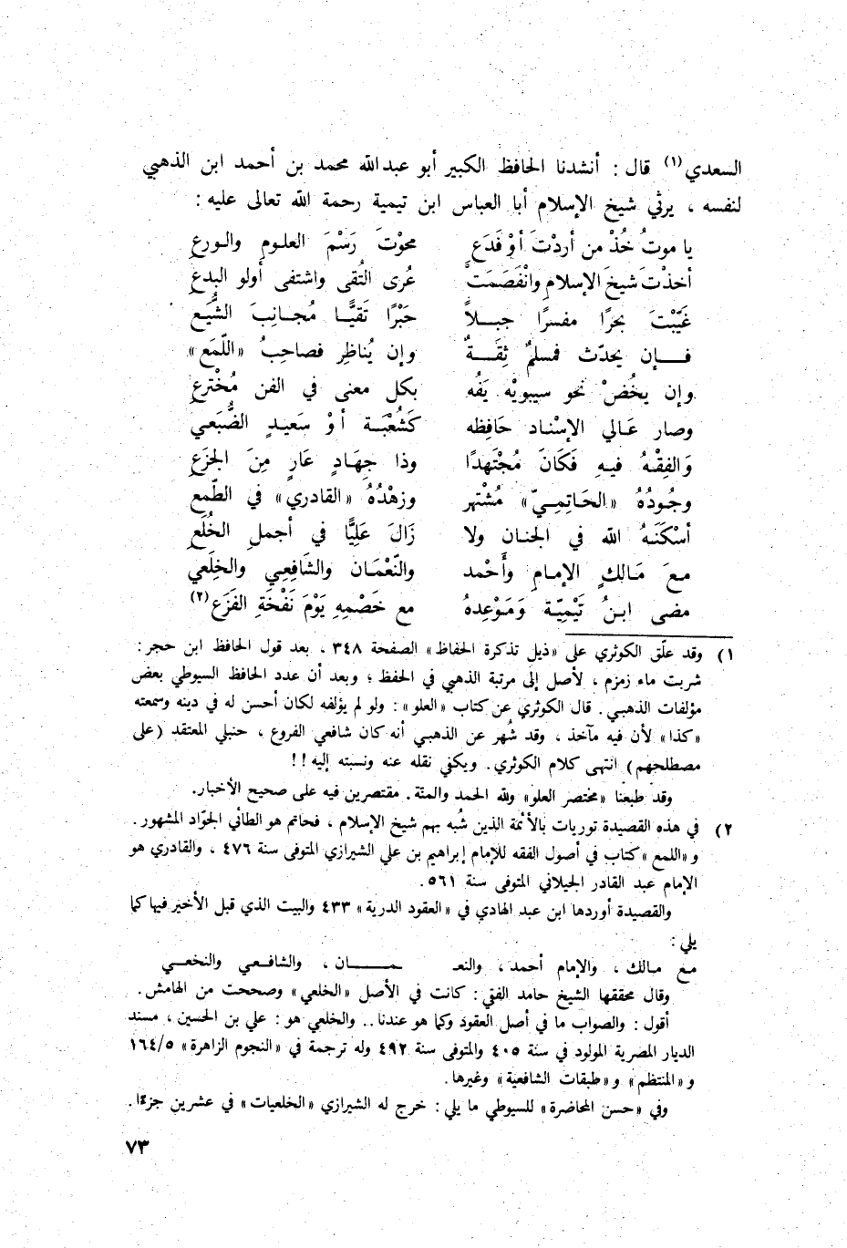 وَكَانَ أحد الْعلمَاء الْفُقَهَاء الْحفاظ النقاد كتب الْكثير وَتكلم على الرِّجَال بالتحرير واجتهد فِي التَّأْلِيف وخاصة فِي التَّفْسِير وَلَقَد ذكر الشَّيْخ تَقِيّ الدّين فَأحْسن الثَّنَاء عَلَيْهِ وترجمه بشيخ الاسلام لما خَبره من حَال الشَّيْخ وَنقل إِلَيْهِ