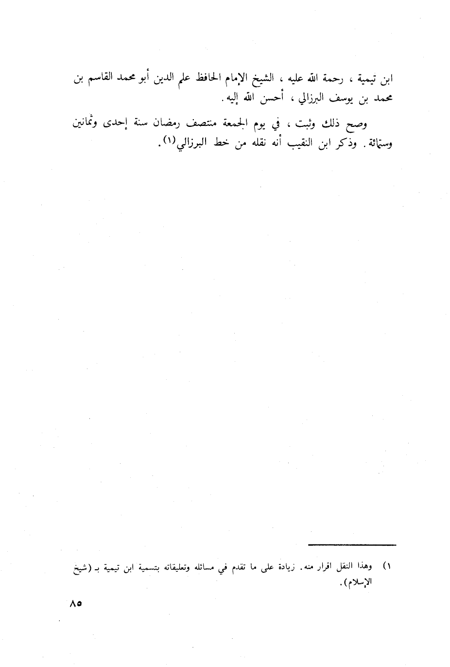 وَمِنْهُم الشَّيْخ الصَّالح الْمُقْرِئ الْفَقِيه الْعَالم مجد الدّين ابو اسحاق ابراهيم ابْن مؤيد الدّين أبي الْمَعَالِي بن الْمعز أبي غَالب المظفر ابْن الْوَزير مؤيد الدّين أبي الْمَعَالِي اِسْعَدْ ابْن أبي يعلى حَمْزَة بن أَسد بن عَليّ بن مُحَمَّد التَّمِيمِي بن القلانسي الدِّمَشْقِي الشَّافِعِي توفّي يَوْم الثُّلَاثَاء مستهل الْمحرم سنة خمس وَسِتِّينَ وَسَبْعمائة ملازما لتلاوة الْقُرْآن كثير الْبر والاحسان قَالَ ابو الْحسن عَليّ بن مُحَمَّد بن سُلَيْمَان اليونيني فِيمَا وجدته بِخَطِّهِ فِي مشيخته قَالَ شَيخنَا مجد الدّين يَعْنِي ابْن القلانسي الْمَذْكُور رَحمَه الله تَعَالَى سَمِعت شيخ الاسلام تَقِيّ الدّين ابْن تَيْمِية رَضِي الله عَنهُ تَعَالَى عَنهُ يَقُول ... من لي بِمثل سيرك المدلل ... نمشي رويدا وتجي فِي الأول ...