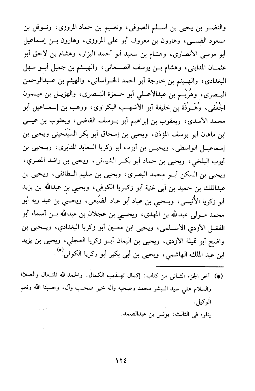 والنضر بن يحيى بن أسلم الصوفي، ونعيم بن حماد المروزي، ونوفل بن مسعود الضبي، وهارون بن معروف أبو علي المروزي، وهارون بن إسماعيل أبو موسى الأنصاري، وهشام بن سعيد أبو أحمد البزار، وهشام بن لاحق أبو عثمان المدايني، وهشام بن يوسف الصنعاني، والهيثم بن جميل أبو سهل البغدادي، والهيثم بن خارجة أبو أحمد الخراساني، والهيثم بن عبد الرحمن البصري، وهريم بن عبد الأعلى أبو حمزة البصري، والهزيل بن ميمون الجعفي، وهوذة بن خليفة أبو الأشهب البكراوي، ووهب بن إسماعيل أبو محمد الأسدي، ويعقوب بن إبراهيم أبو يوسف القاضي، ويعقوب بن عيسى بن ماهان أبو يوسف المؤذن، ويحيى بن إسحاق أبو بكر السيلحيني، ويحيى بن إسماعيل الواسطي، ويحيى بن أيوب أبو زكريا العابد المقابري، ويحيى بن أيوب البلخي، ويحيى بن حماد أبو بكر الشيباني، ويحيى بن راشد المصري، ويحيى بن السكن أبو محمد البصري، ويحيى بن سليم الطائفي، ويحيى بن عبد الملك بن حميد بن أبي غنية أبو زكريا الكوفي، ويحيى بن عبد الله بن يزيد أبو زكريا الأنيسي، ويحيى بن عباد أبو عباد الضبعي، ويحيى بن عبد ربه أبو محمد مولى عبد الله بن المهدي، ويحيى بن عجلان بن عبد الله ابن أسماء أبو الفضل الأزدي الأسلمي، ويحيى بن معين أبو زكريا البغدادي، ويحيى بن واضح أبو تميلة الأزدي، ويحيى بن اليمان أبو زكريا العجلي، ويحيى بن يزيد بن عبد الملك الهاشمي، ويحيى بن أبي بكير أبو زكريا الكوفي.