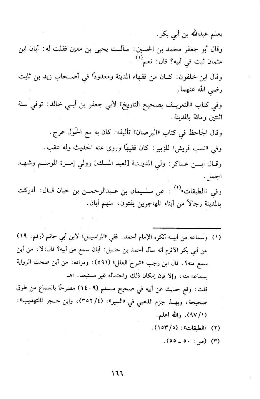 وفي " الطبقات ": عن سليمان بن عبد الرحمن بن حبان قال: أدركت بالمدينة رجالا من أبناء المهاجرين يفتون، منهم أبان.