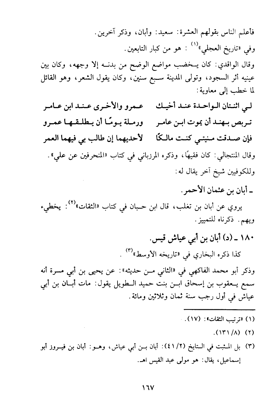 فأعلم الناس بقولهم العشرة: سعيد: وأبان، وذكر آخرين.