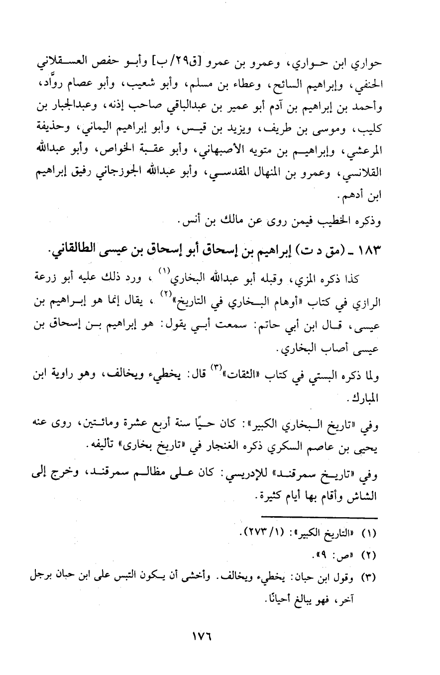 183 - (مق د ت) إبراهيم بن إسحاق أبو إسحاق بن عيسى الطالقاني.