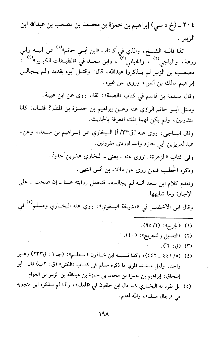 204 - (خ د سي) إبراهيم بن حمزة بن محمد بن مصعب بن عبد الله بن الزبير.