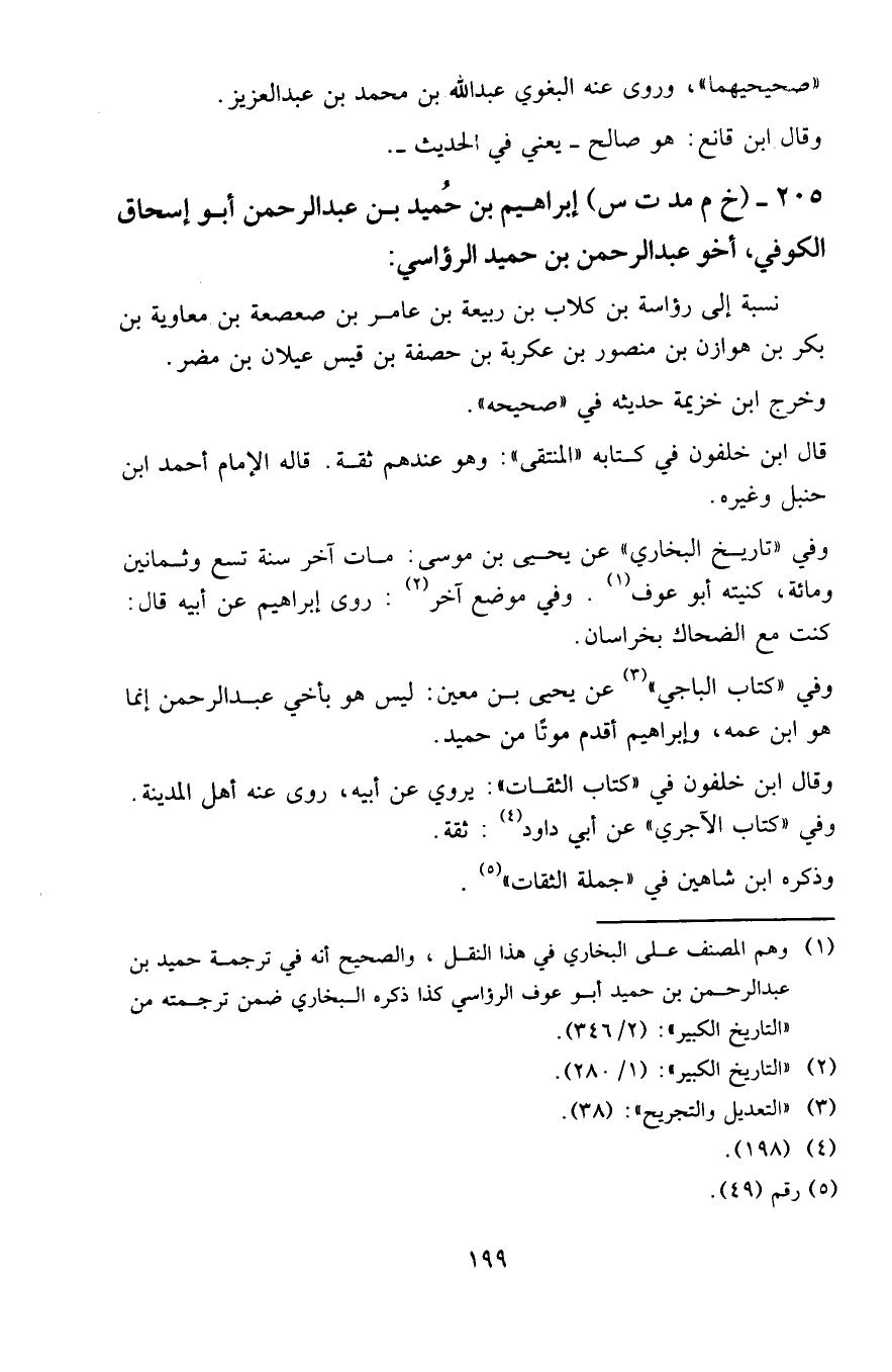 205 - (خ م مد ت س) إبراهيم بن حميد بن عبد الرحمن أبو إسحاق الكوفي، أخو عبد الرحمن بن حميد الرؤاسي.