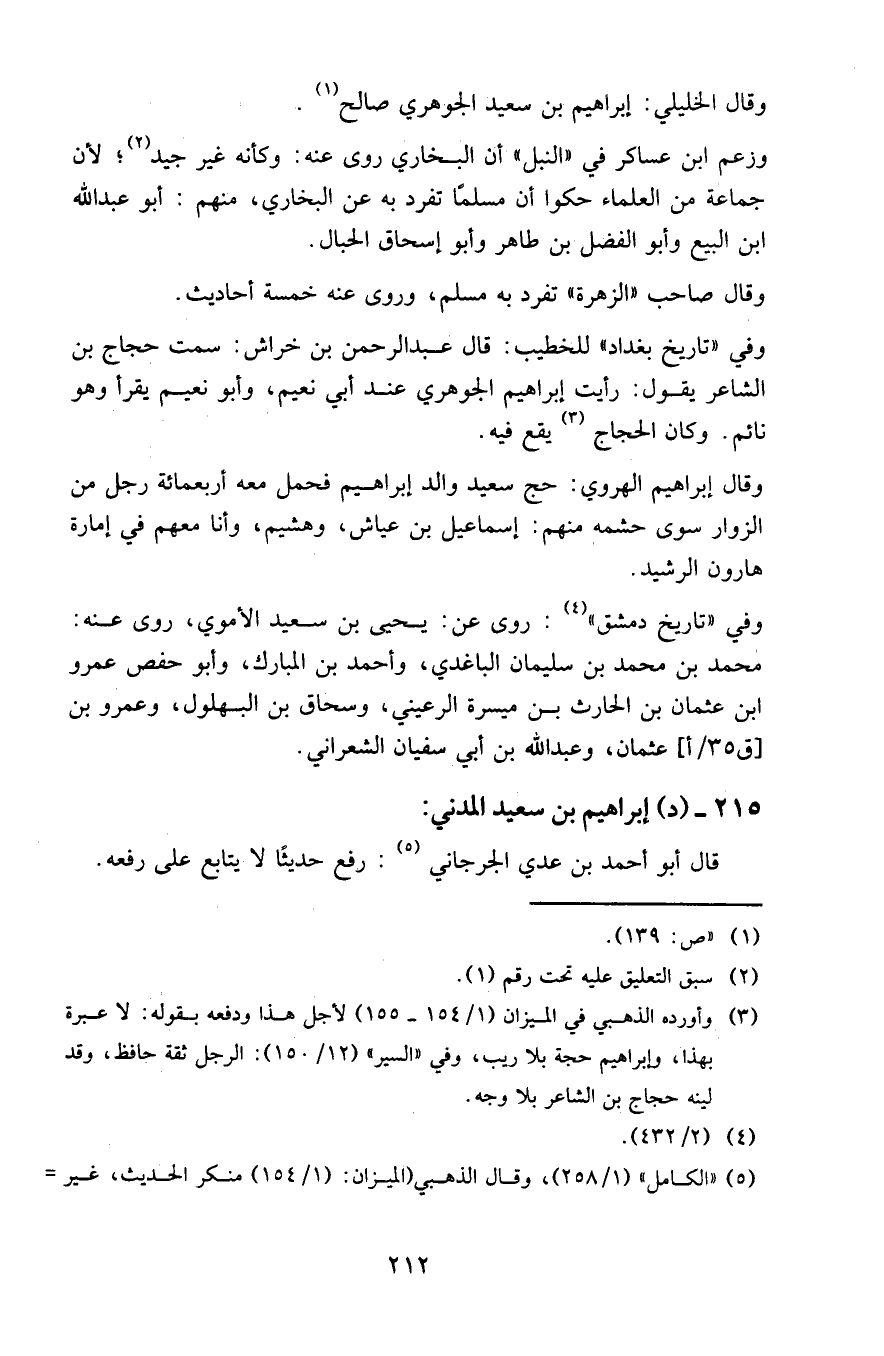 215 - (د) إبراهيم بن سعيد المدني: قال أبو أحمد بن عدي الجرجاني: رفع حديثا لا يتابع على رفعه.