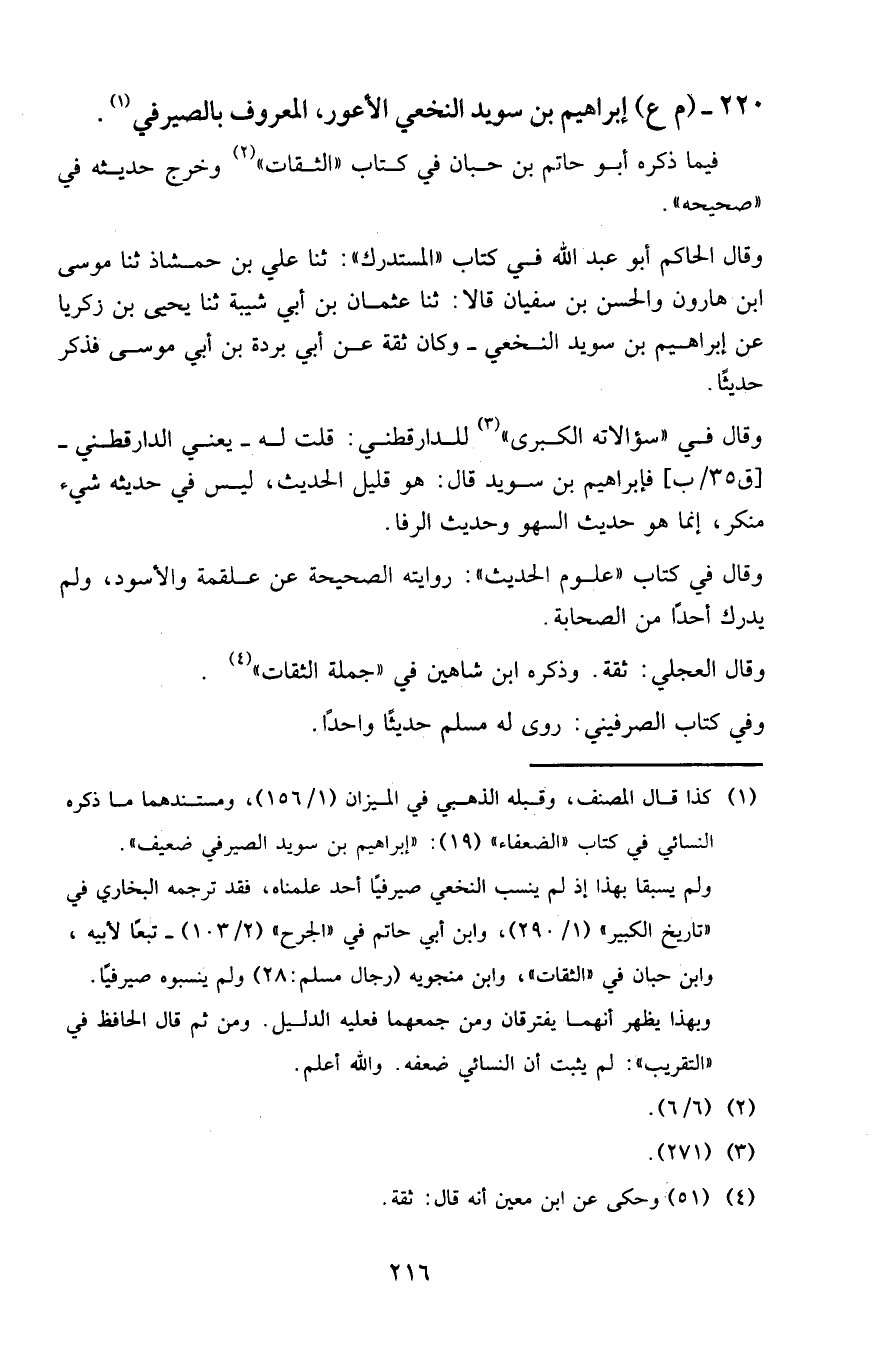 220 - (م ع) إبراهيم بن سويد النخعي الأعور، المعروف بالصيرفي.