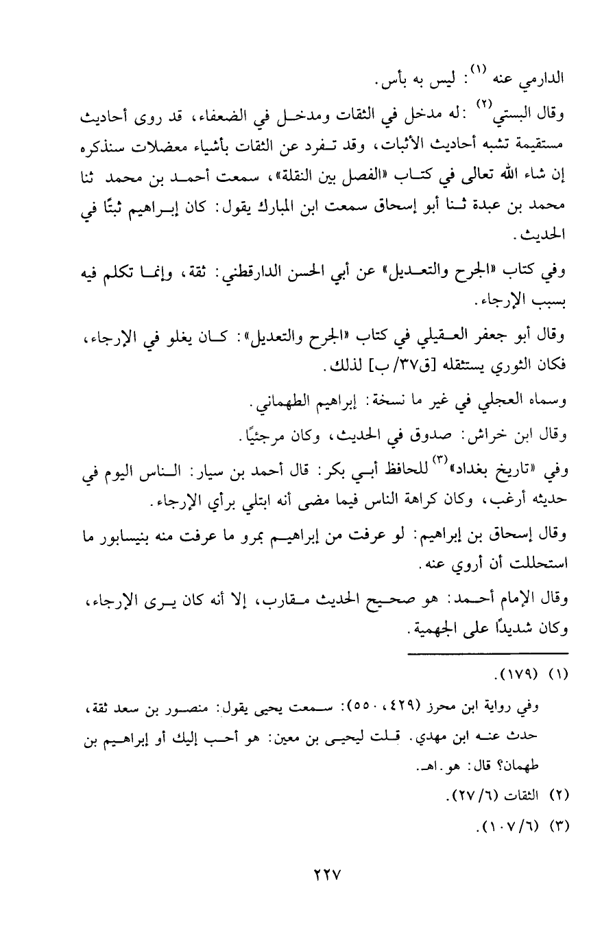 وفي كتاب " الجرح والتعديل " عن أبي الحسن الدارقطني: ثقة، وإنما تكلم فيه بسبب الإرجاء.