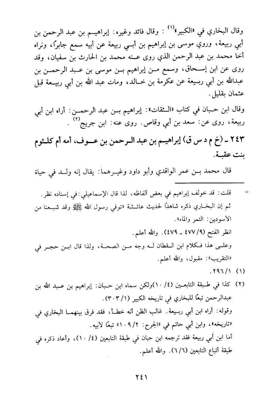 243 - (خ م د س ق) إبراهيم بن عبد الرحمن بن عوف، أمه أم كلثوم بنت عقبة.