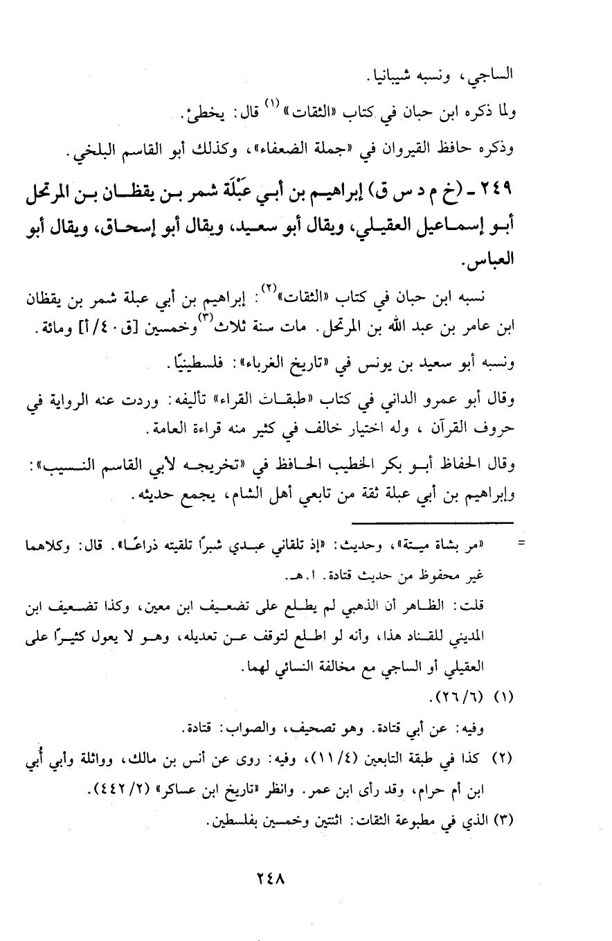 249 - (خ م د س ق) إبراهيم بن أبي عبلة شمر بن يقظان بن المرتحل أبو إسماعيل العقيلي، ويقال أبو سعيد، ويقال أبو إسحاق، ويقال أبو العباس.
