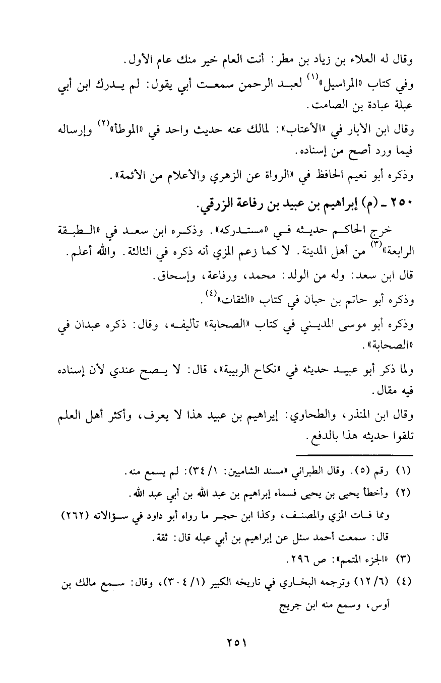 250 - (م) إبراهيم بن عبيد بن رفاعة الزرقي.