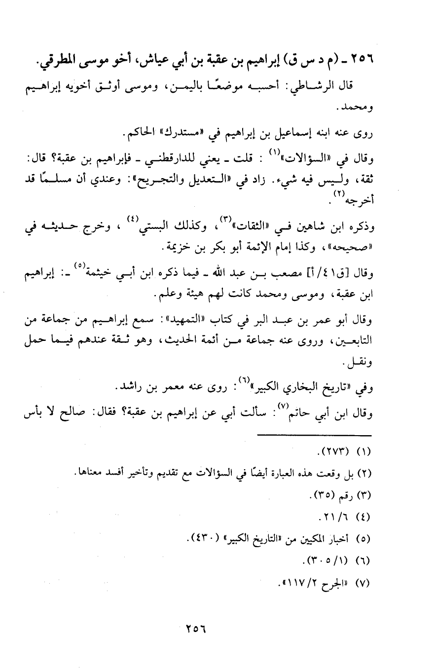 256 - (م د س ق) إبراهيم بن عقبة بن أبي عياش، أخو موسى المطرقي.