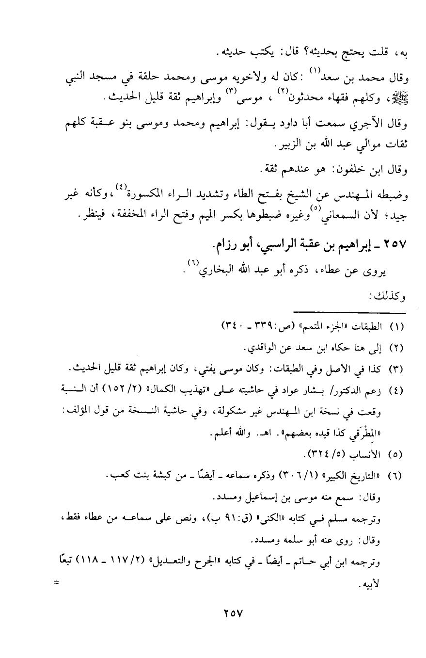 257 - إبراهيم بن عقبة الراسبي، أبو رزام.