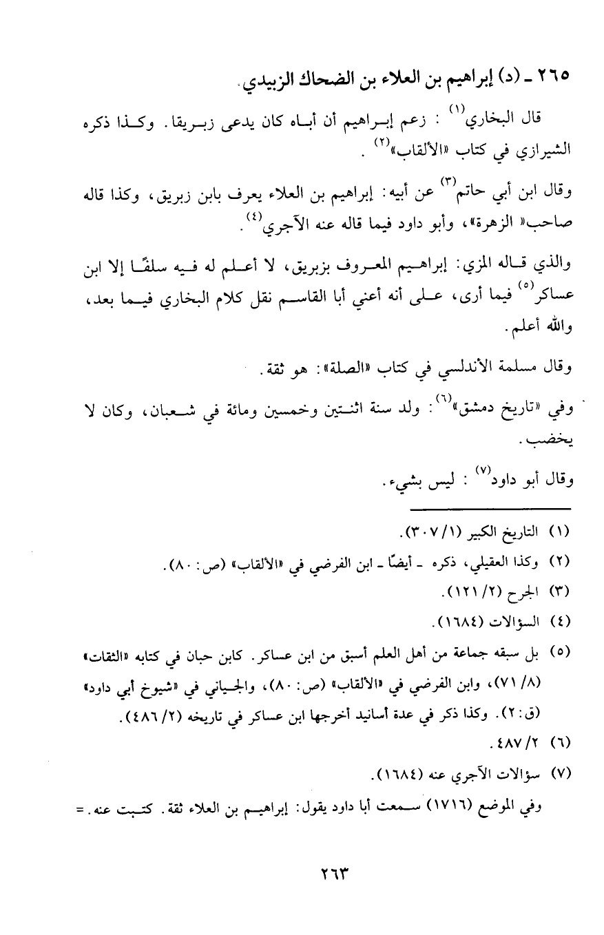 265 - (د) إبراهيم بن العلاء بن الضحاك الزبيدي.