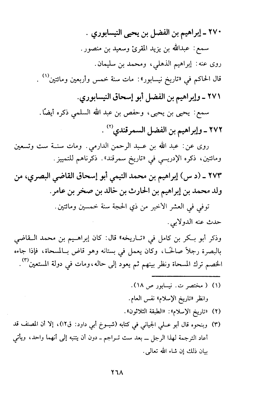 271 - وإبراهيم بن الفضل أبو إسحاق النيسابوري.