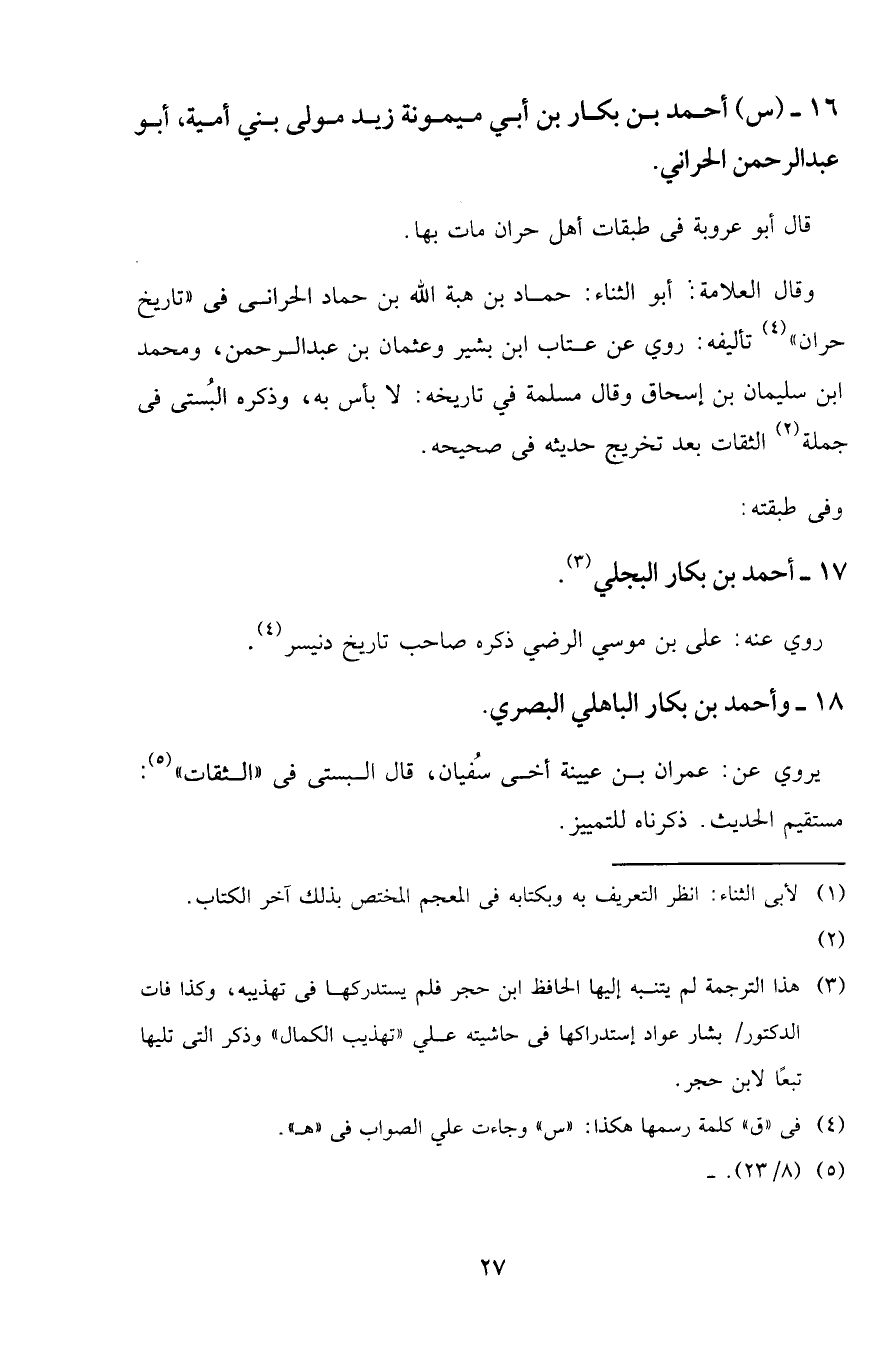 16 - (س) أحمد بن بكار بن أبي ميمونة زيد مولى بني أمية، أبو عبد الرحمن الحراني.