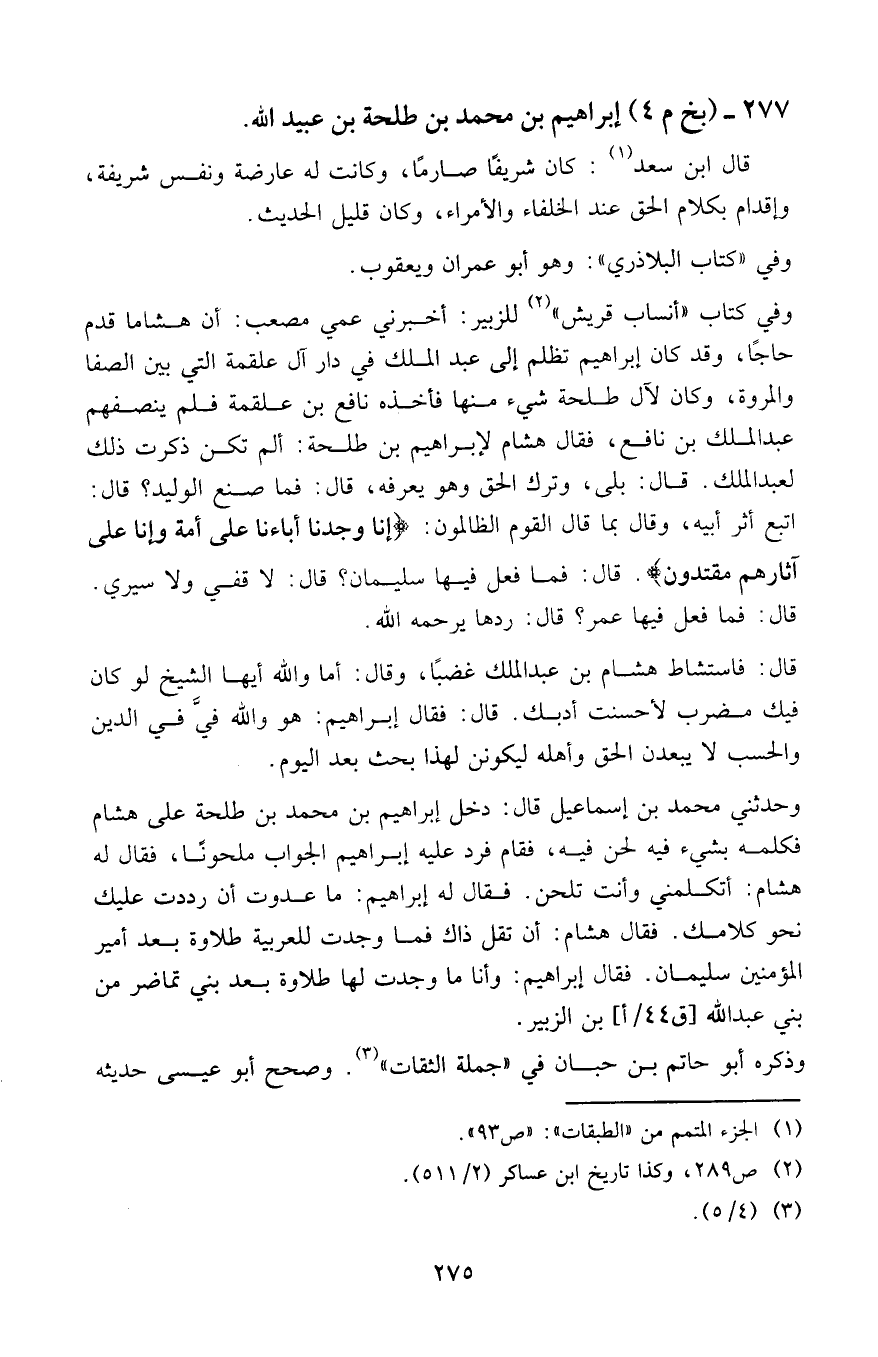 277 - (بخ م 4) إبراهيم بن محمد بن طلحة بن عبيد الله.