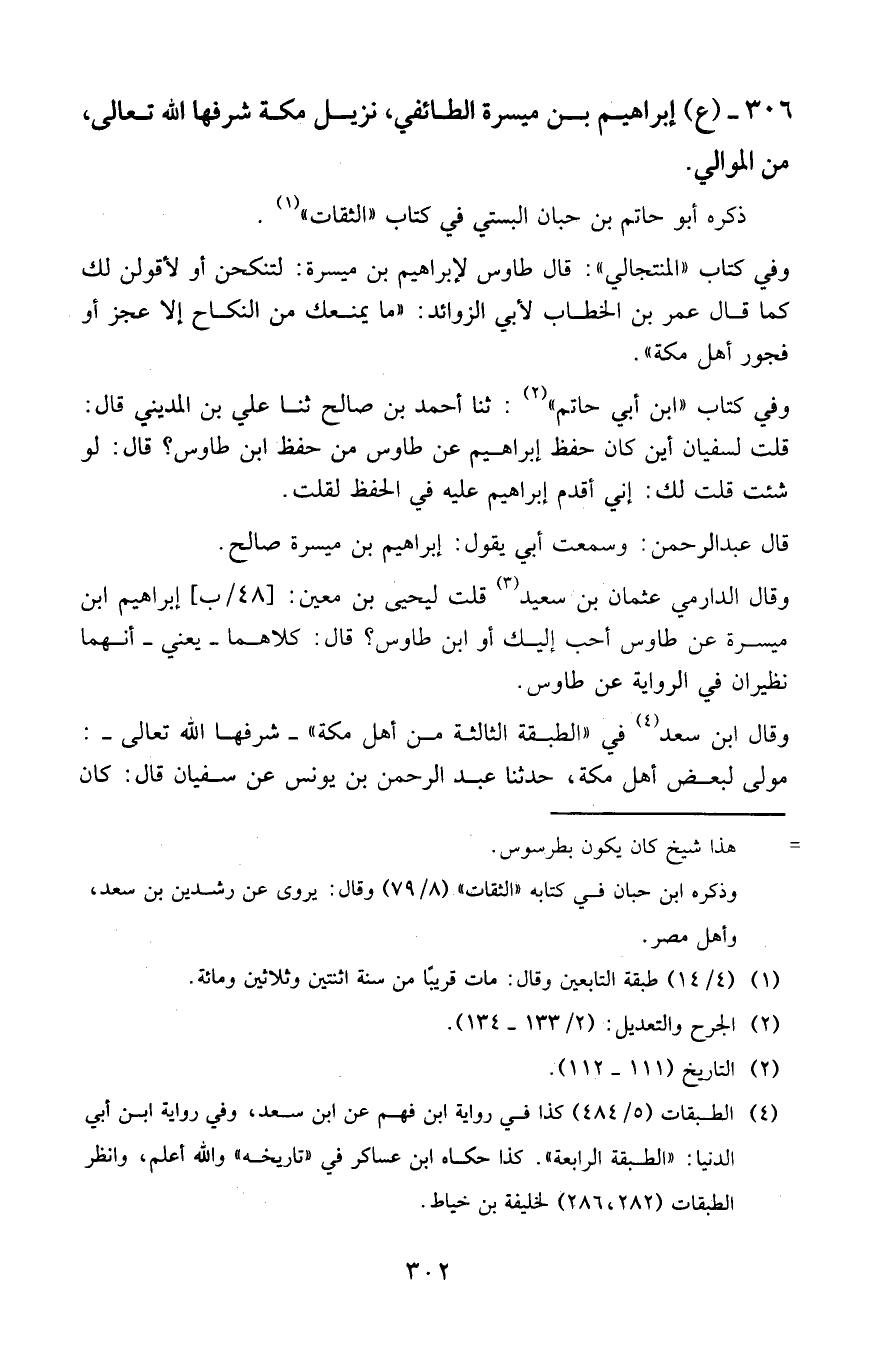 306 - (ع) إبراهيم بن ميسرة الطائفي، نزيل مكة شرفها الله تعالى، من الموالي.