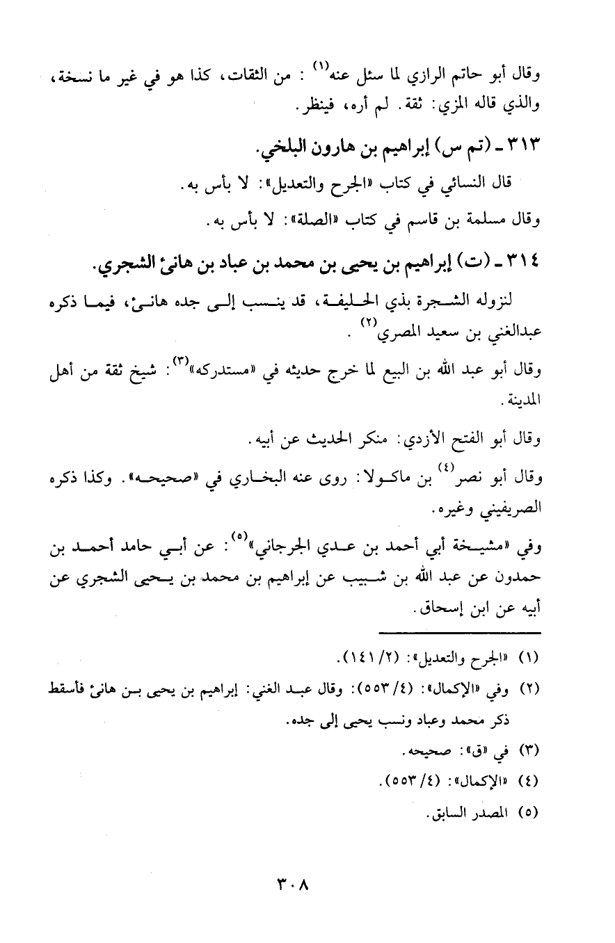 314 - (ت) إبراهيم بن يحيى بن محمد بن عباد بن هانئ الشجري.