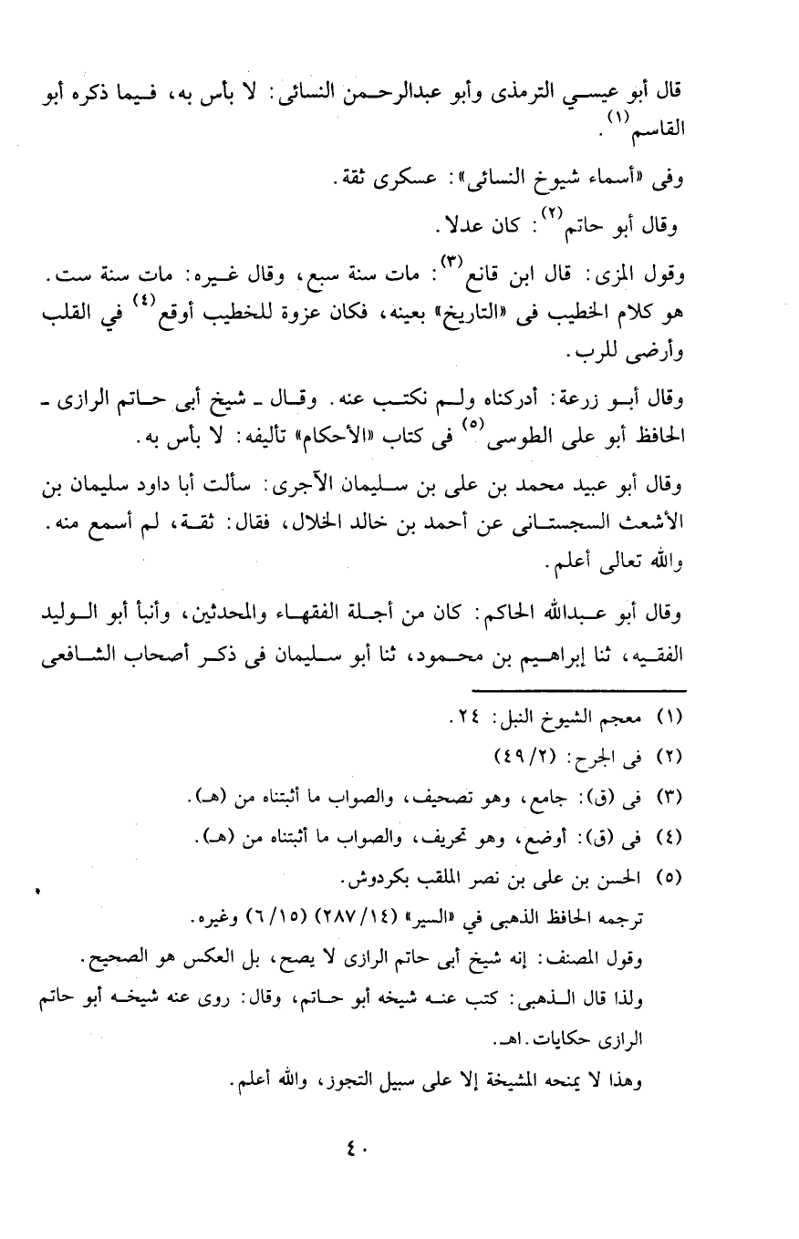 وقال أبو زرعة: أدركناه ولم نكتب عنه. وقال - شيخ أبي حاتم الرازي - الحافظ أبو علي الطوسي في كتاب " الاحكام " تأليفه: لا بأس به.